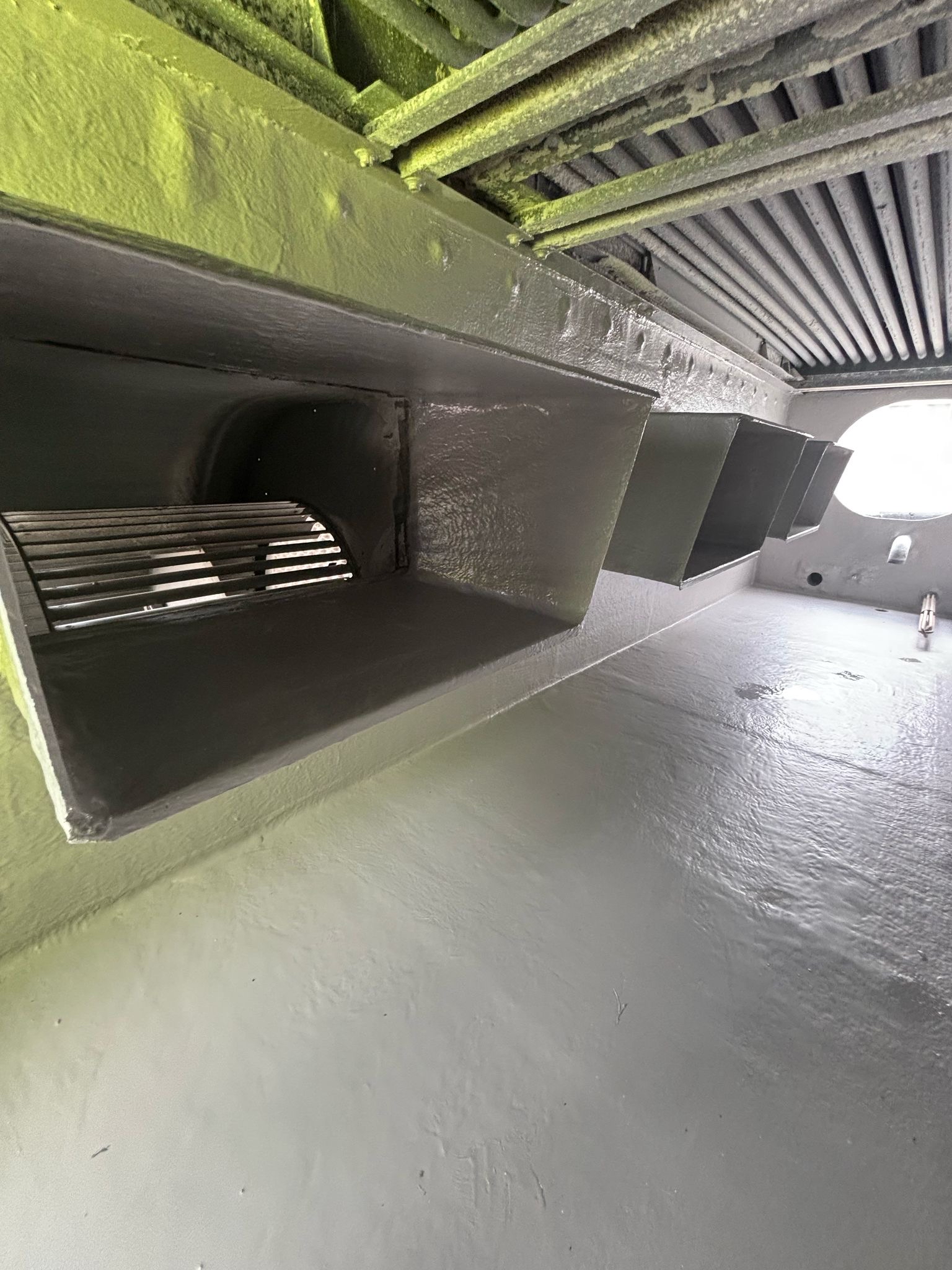 Our team swiftly mobilised and carried out thorough mechanical preparation, creating a suitable adhesion key across all surfaces. Despite the confined space and challenging angles, the GRP lining process was executed with precision and care. Each layer was applied methodically to guarantee full coverage and structural integrity.
